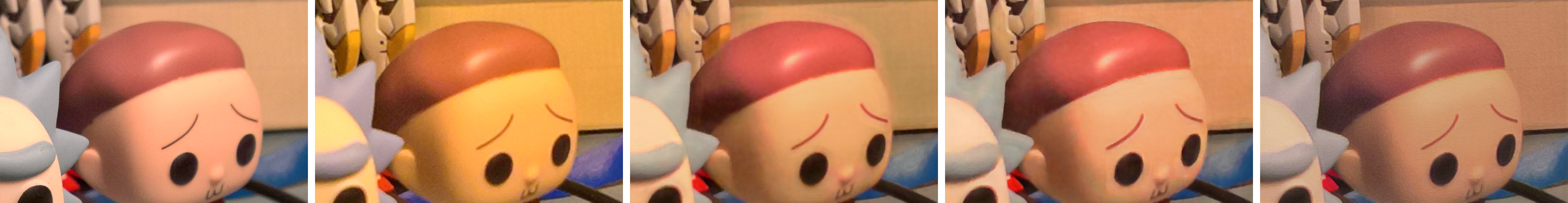 The following figure shows a qualitative comparison of these methods when trained on the ImagePairs data set. Needless to say, these models perform much better on noise cancellation, color correction, and super resolution when trained on this data set than when trained on DIV2K.