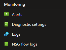 For example, in addition to metrics, from the Azure portal we can see the following for the Azure Network Security Group resource:
