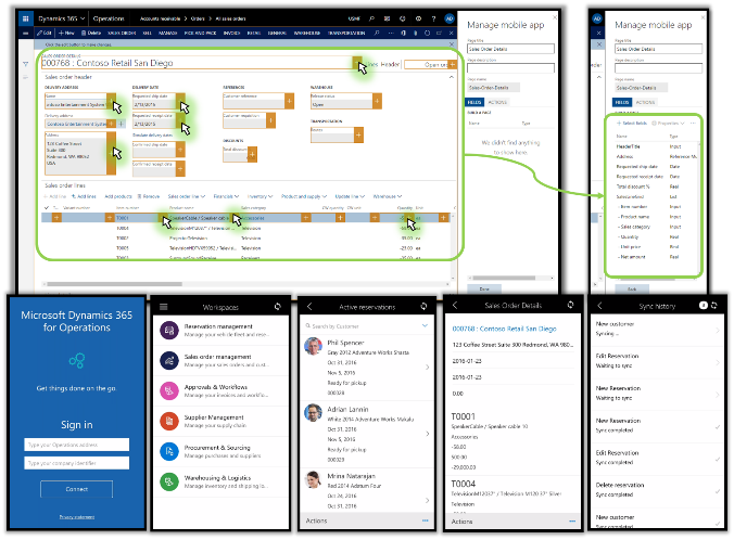 • Dynamics 365 for Operations, delivers a variety of mobile experiences for consumers, warehouse workers…in fact, for all application users. A mobile shopping application that will enable retail consumers to browse, search, and complete their shopping experience on a mobile device. Warehouse inventory apps enable pick, pack and ship scenarios. We are excited to introduce the capability to mobile-enable any existing Dynamics 365 for Operations process for the iOS, Android and Windows Phone platforms using a point-and-click designer. We have enhanced Office 365 capabilities including Excel experiences with improved designers, Skype for Business presence support, an external feed control including SDK support for integration with Yammer, Twitter, LinkedIn, and Email. A new built-in ad-hoc reporting capability delivers modern, formatted reports in Microsoft Word. A built-in user training mode rapidly enhances the productivity of new users and the understanding of new processes.