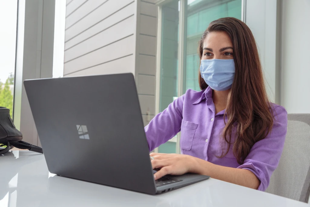 a person sitting at a table using a laptop computer