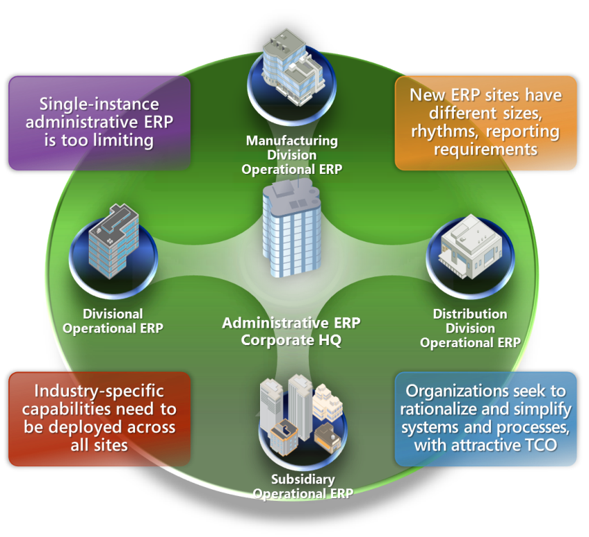 • Establishing consistent processes and best practices with same solution. Microsoft Dynamics AX is an industry ready and global solution that can be deployed according to your governance model whether centralized, decentralized or federated. This allows you to implement core configurations quickly and easily integrate with your administrative ERP.