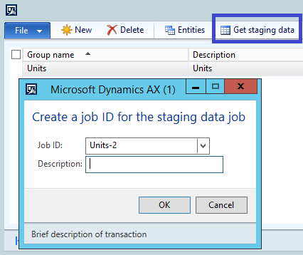 Navigate to /Data import export framework/Common, click on ‘Processing group’, select the relevant ‘Processing group’ (in this case it is Units) and click on ‘Get staging data’.