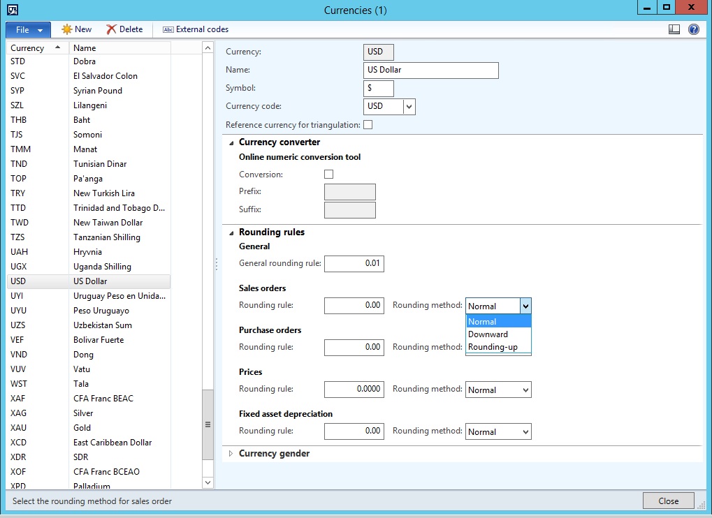 There are 3 generic rounding rules in Dynamics AX. ‘Normal’, ‘Upward’ & ‘Downward’
