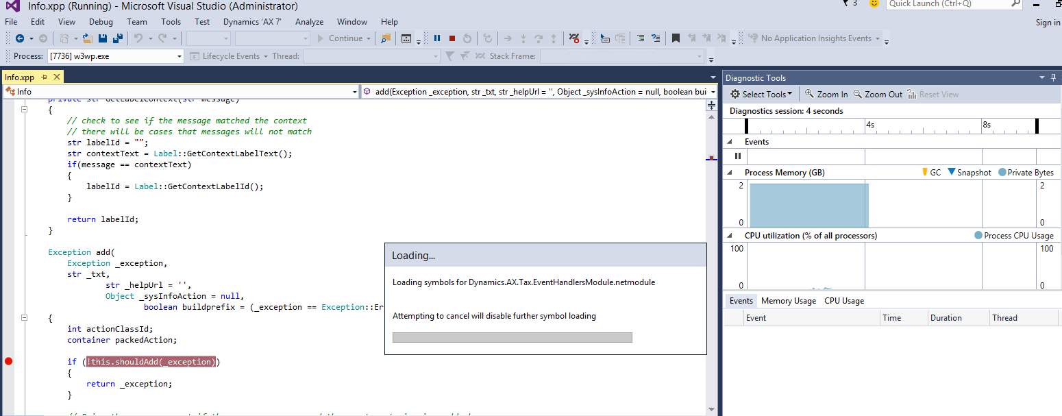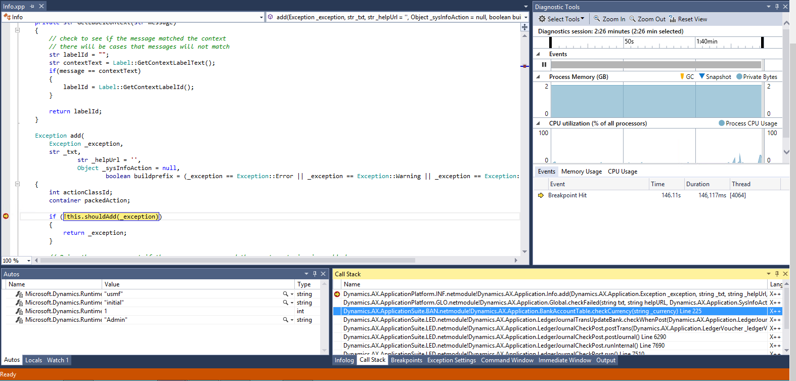 This purpose of this blog is to show how you can get quickly get started with debuggingin AX7, specifically by showing how you can debug an error message issued from AX.