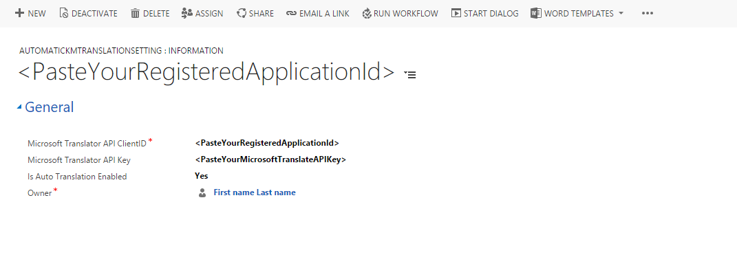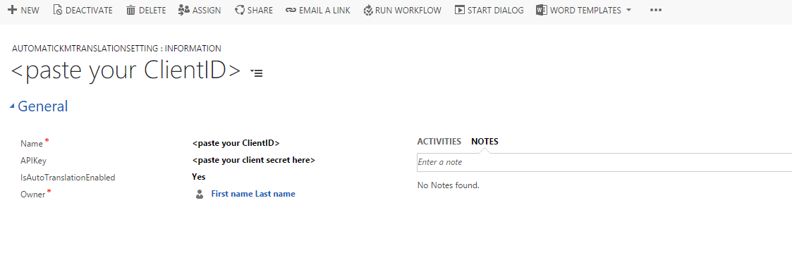 Download the Automatic Translation sample solution from the Git repository and import the managed solution into your CRM organization. The solution adds a sitemap entry for the AutomaticKMTranslationSetting entity under Service. This helps you manage Automatic Translation-related settings. As part of the initial configuration, you need to enter your Microsoft Translate API ClienID and Client Secret. The plugins use this to translate content with Microsoft Translate API using your subscription.