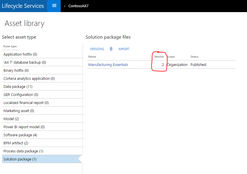 Note that the Version column shows the latest version number of the asset that is in the asset library.