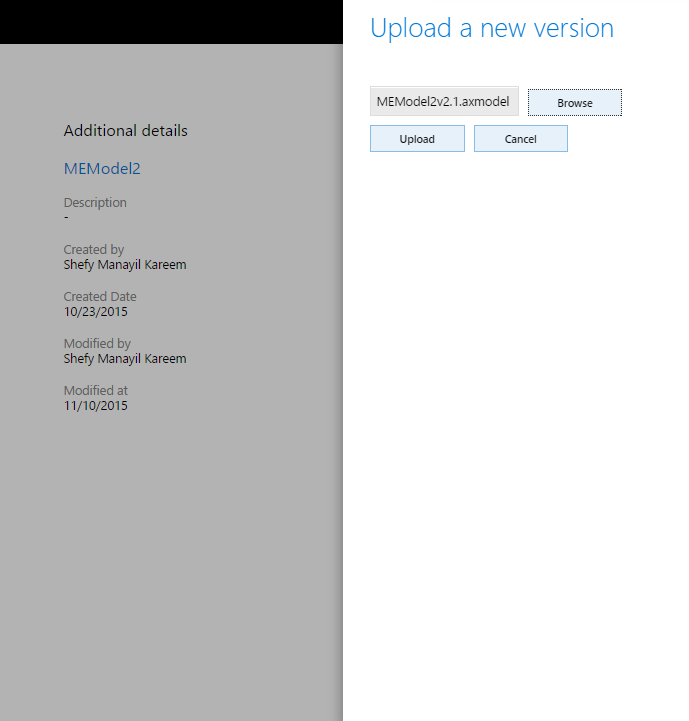 Select the published file for which are publishing a newer version and then click Upload, as shown below.