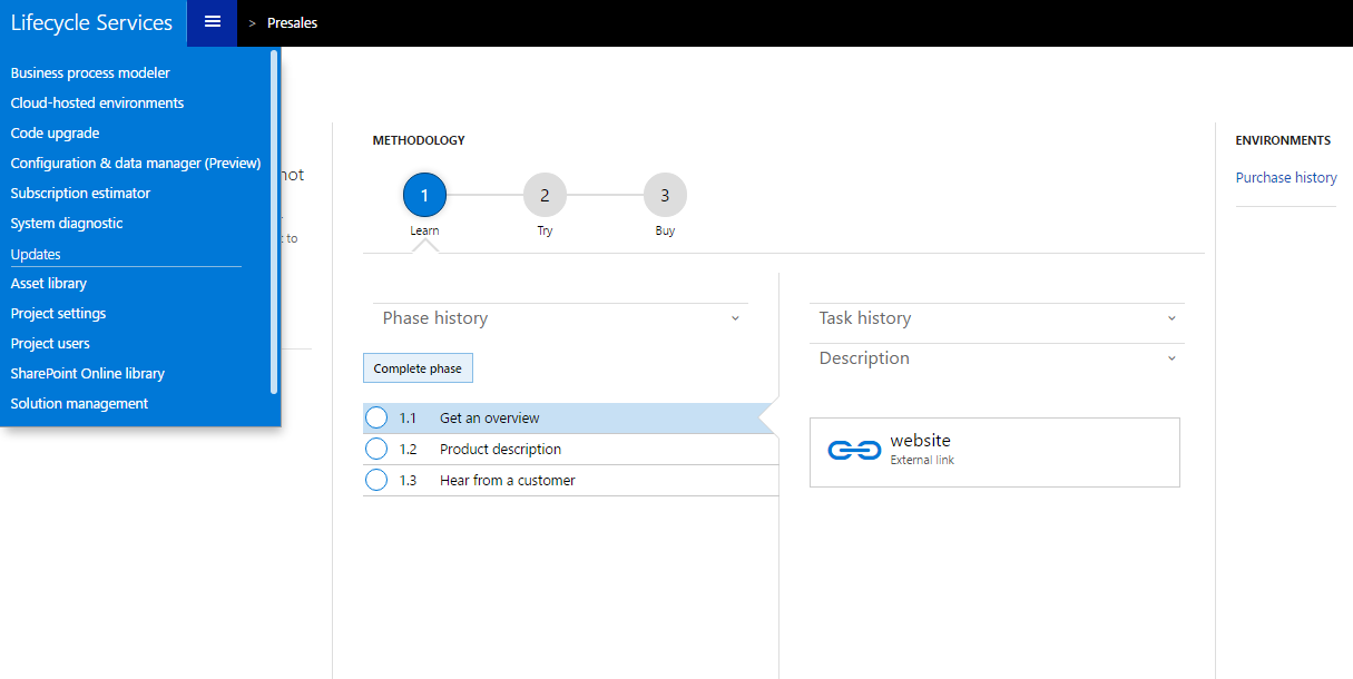 Additional services are now available in the presales project workspace. As a partner, you can use the pre-sales workspace for all prospective presales scenarios. Note that only partners can provision a new Dynamics AX cloud environment.