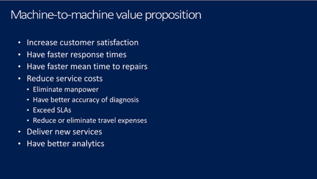 Now look at the value proposition for another subset of IoT, machine-to-machine: