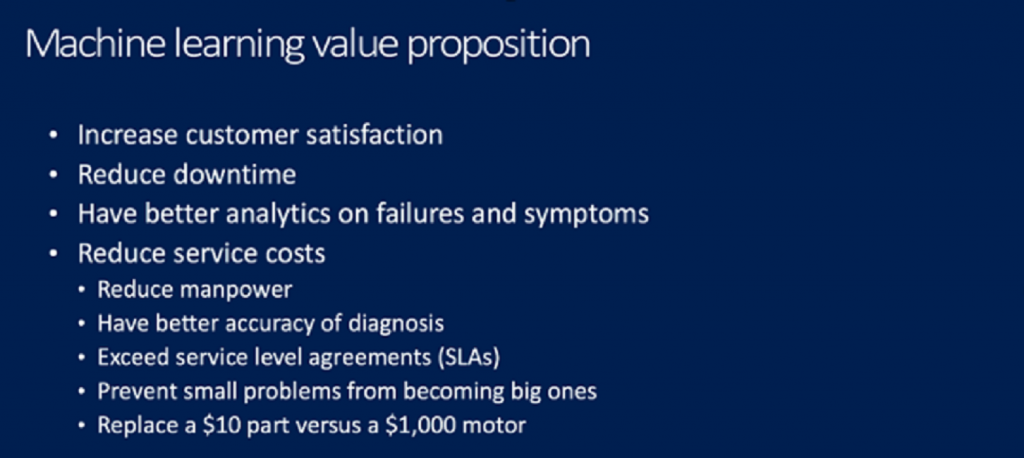 ‘Machine learning’ is a specific form of IoT, but the benefits on this slide can apply to IoT adoption questions as a whole. You can use this to help a decision-maker answer, “What’s the value proposition for us here?”