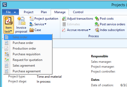 - Back in the Project Contracts form, click Project Contract -> New -> Project.