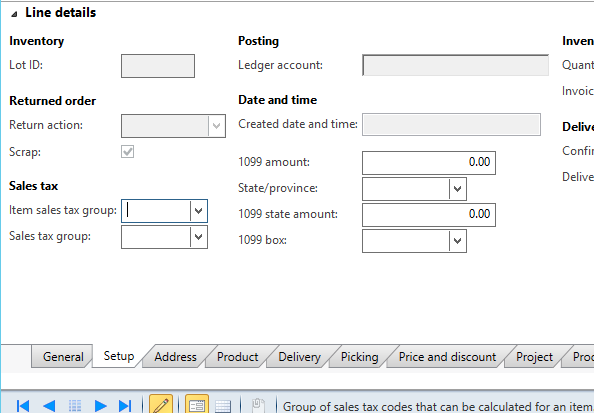 - Back under Purchase Order Lines fast tab, click Financials -> Distribute Amounts.