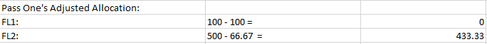 by the amount looking to allocate of 360. This leaves 66.67 to allocate to FL2. After Pass One, these amounts