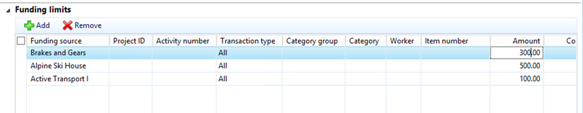 - Back in the Project Contracts form under Funding Rules fast tab, click Add.