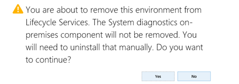 There’s a possibility to add two types of environments to LCS project – On-premise and cloud environments. Cloud environments are added by deploying a machine into Azure. On-premise environment is added by System diagnostics installation. It is fairly easy to delete cloud hosted environment from the system. But it is not possible to delete On-premise environment in the current design. The issue has been reported to LCS development team, and fix should be released in August 2016.