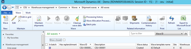 The actual configuration of the parallel processing is done on the Wave process methods form found under Warehouse Management > Setup > Waves > Wave process methods.