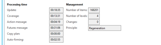 The actual impact on performance always depends on many different things of course. If you have direct demand for almost every item, the difference will not be that big. If Master plan needs to do a lot of planned order scheduling, and this is using up majority of the time, the difference will not be that big. The biggest differences you will see when you have, let’s say, a million items, but only demand for 50.000 of these items. The overhead for checking the 950.000 items before this update had a rather big impact on update phase and coverage phase of the master plan. By filtering out all these items, it could save up to several hours.