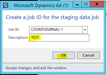 e. In the Create a job ID for the staging data job pop-up form, enter ‘TEST’ in the Description field, and then click OK.