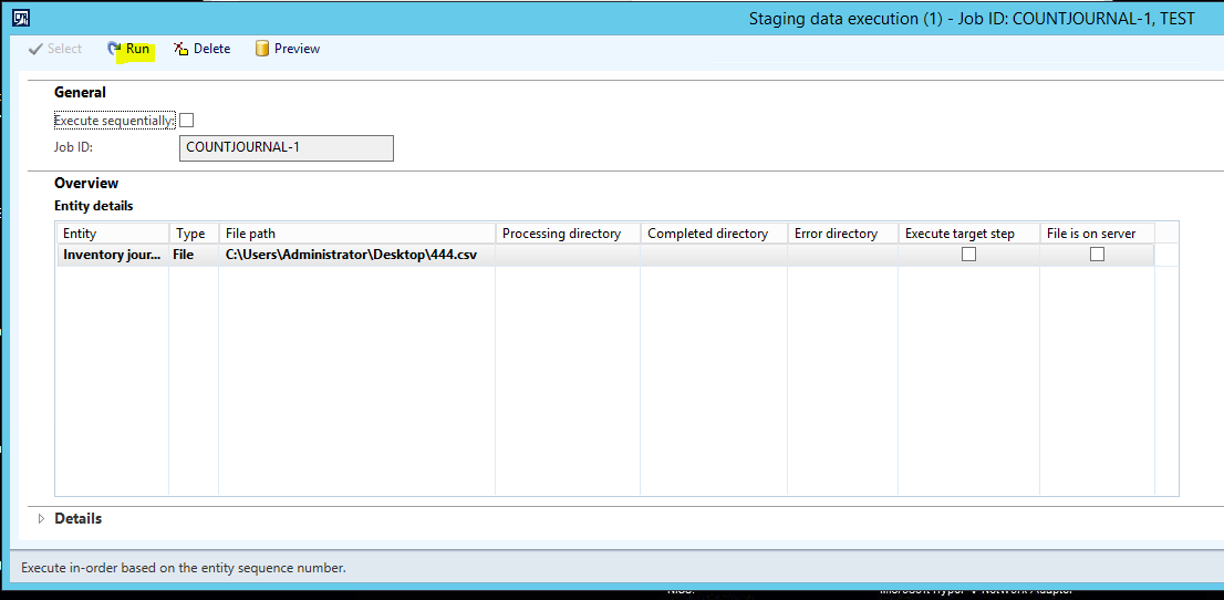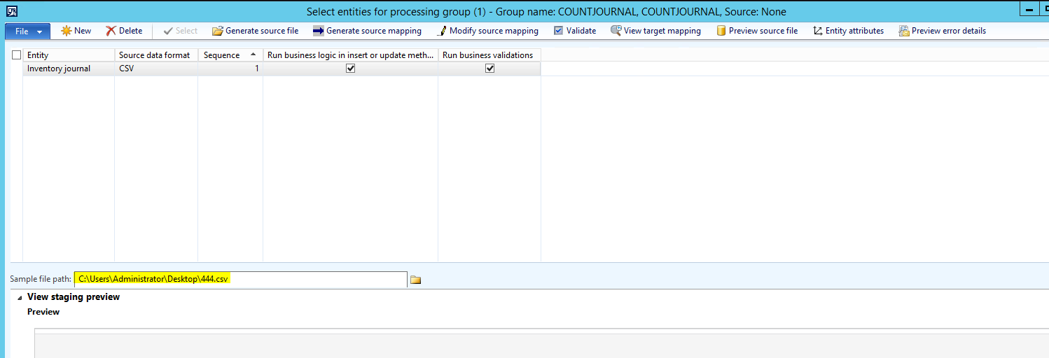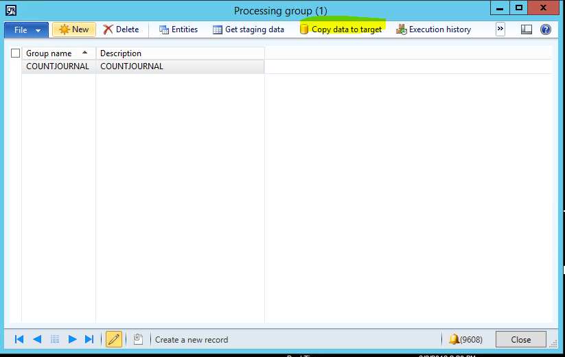 d. In the Processing group form, click on the ‘COUNTJOURNAL’ Processing group, and then click the Get staging data button.