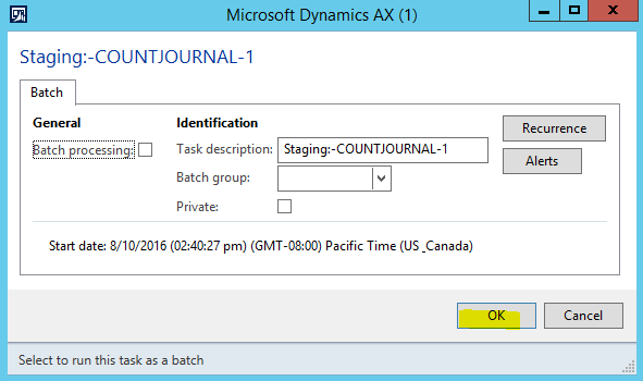 l. In the Target:COUNTJOURNAL pop-up form, click OK.