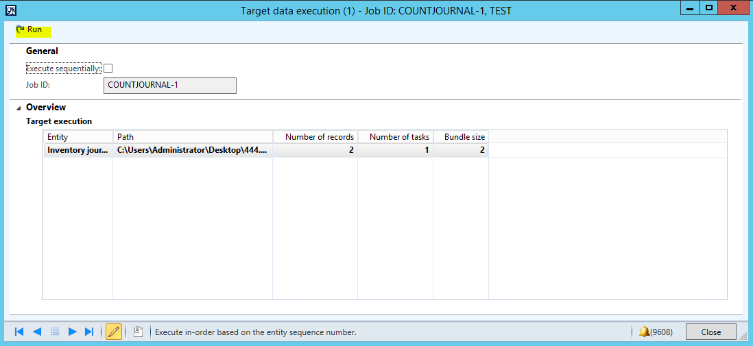 k. In the Target data execution form, click the Run button.