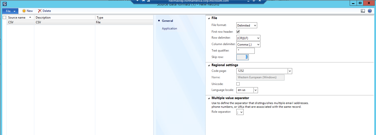 a. Go to Data import export framework | Setup | Source data formats to open the Source data formats form.