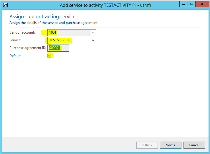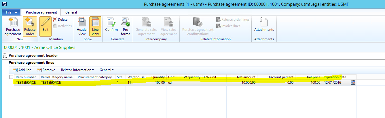 NOTE: Notice that we linked the TESTSERVICE Service Item to the Production Flow Activity via the Purchase Agreement.