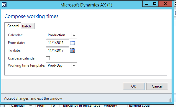- In the Compose working times form, enter the following, and then click OK: