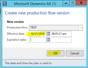 - In the Activate production flow form, click OK.
