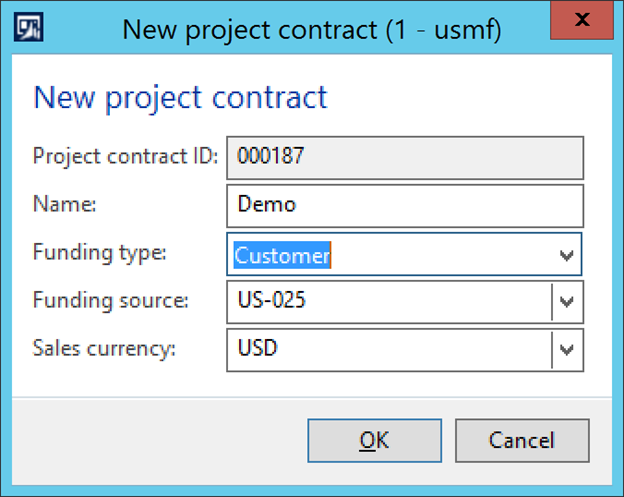 Project contract ID: 000187(comes automatically based on number sequence setup)