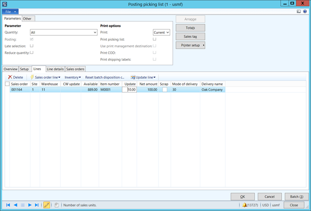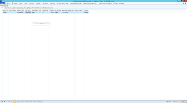 NOTE: Sales order line status is Invoiced as it was invoiced as part of the Item requirement (which is Invoiced after posting the Packing slip)