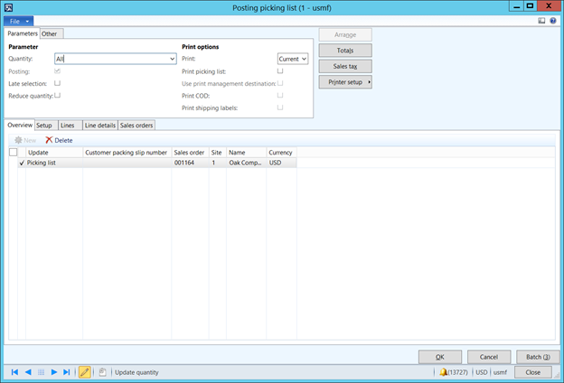 Step 6: Make a picking list and packing slip from Item requirements form for remaining quantity