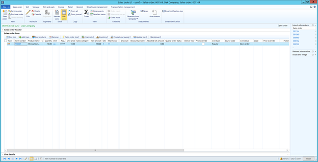 Note: When new item requirements are entered, they are added as addition lines in the same sales order.
