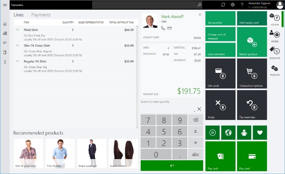 Dynamics 365 for Operations includes the Retail Modern Point-of-Sale app offering a rich clienteling experience that gives sales associates what they need while on the sales floor: product, inventory, customer and other information that helps them provide exceptional customer service. Modern Point-of-Sale is built as a Universal Windows Platform and cross-platform application, which means you can choose the form factor (PC, tablets or phones) and platform (Windows, iOS or Android). This unique architecture even allows the same POS to be accessible via browser (Cloud POS), which can help you minimize deployment and maintenance costs and react quickly to changing business needs.