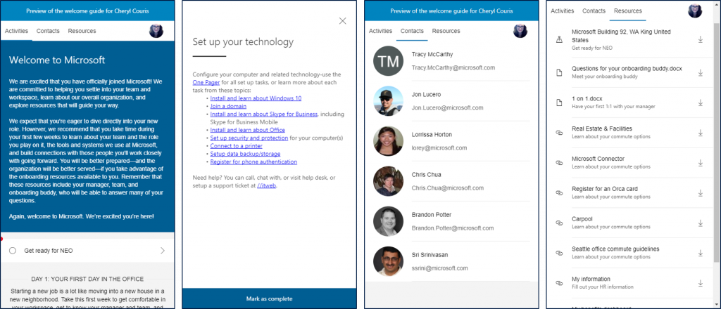 With Dynamics 365 for Talent, managers can create step-by-step, personalized onboarding guides that help new employees feel welcome and keep them engaged, even before their first day.