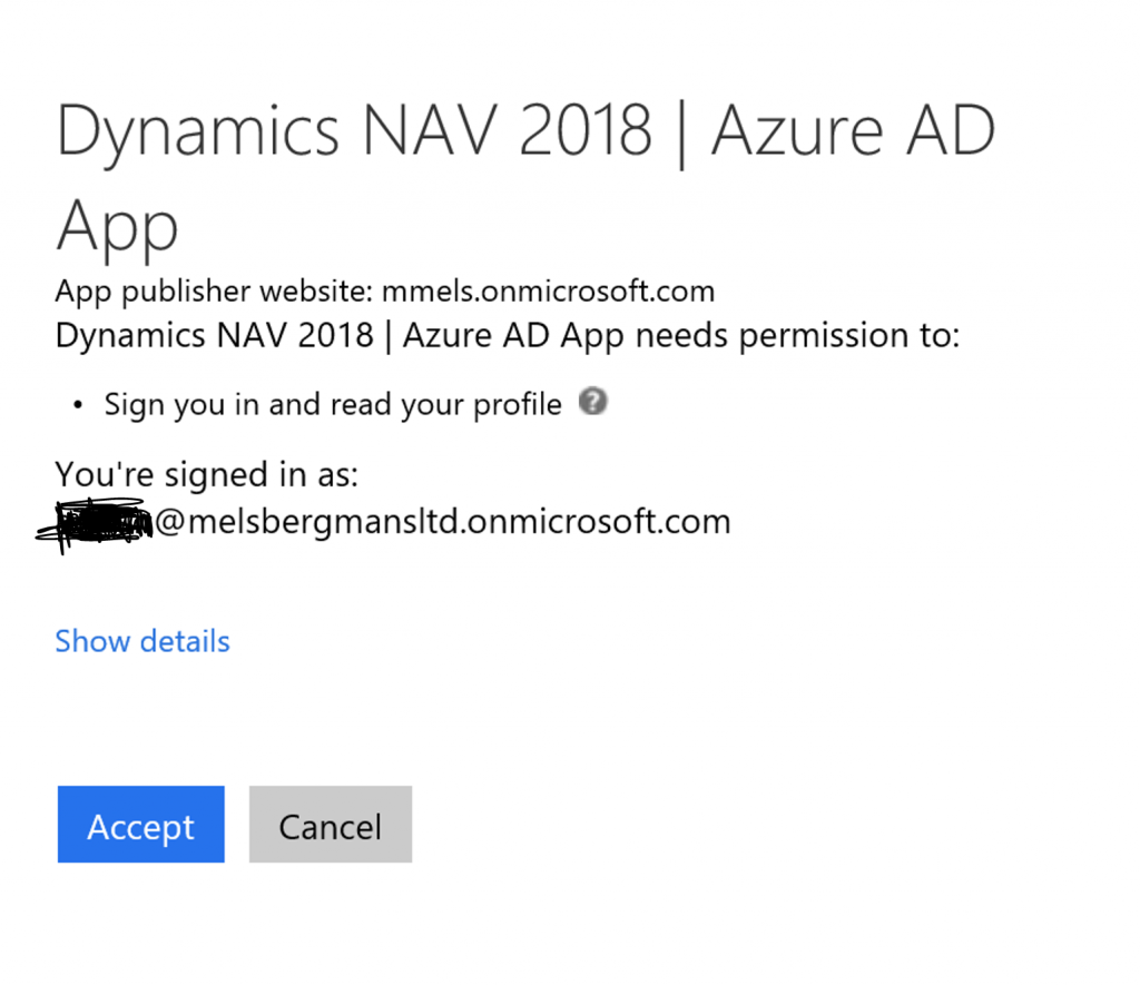 In the described environment setup, we can now only logon with users that are defined in Dynamics NAV and only belong to tenant mmels.onmicrosoft.com.