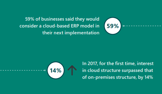 According to market intelligence from Aberdeen, we’ve reached the tipping point for cloud ERP adoption. Nearly 60 percent of surveyed businesses will consider a cloud-based ERP in their next implementation. And interest in on-premises models has plummeted by 30 percent.