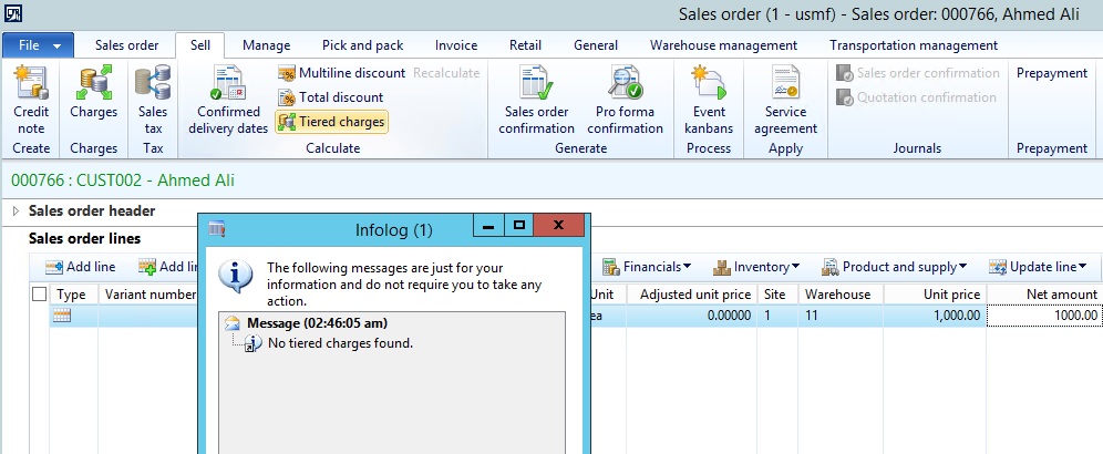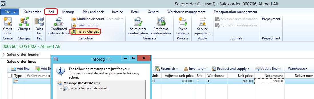 Since the system requires to calculate and compare the configured charges against the sales order total, this calculation function is done by using the Tiered Charges function on the sales order header.