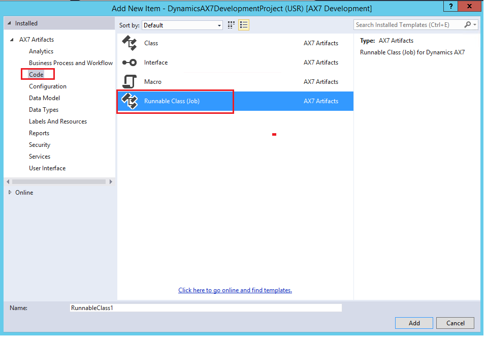 Doubleclick on the ‘Runable class’ and enter the code editor window and give your job a meaningful name and write your code like you would do any X++ job as known in previous versions