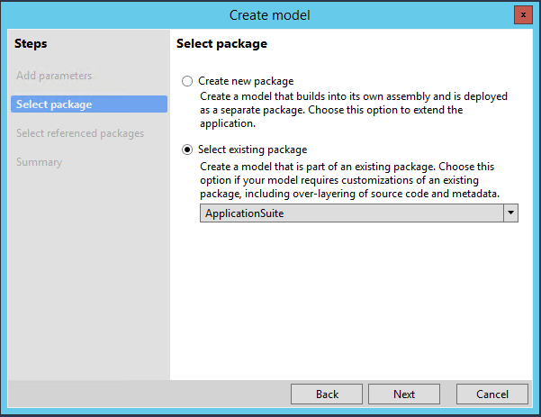 Click ‘Next’ and select ‘Existing package’ and choose ‘Application Suite’