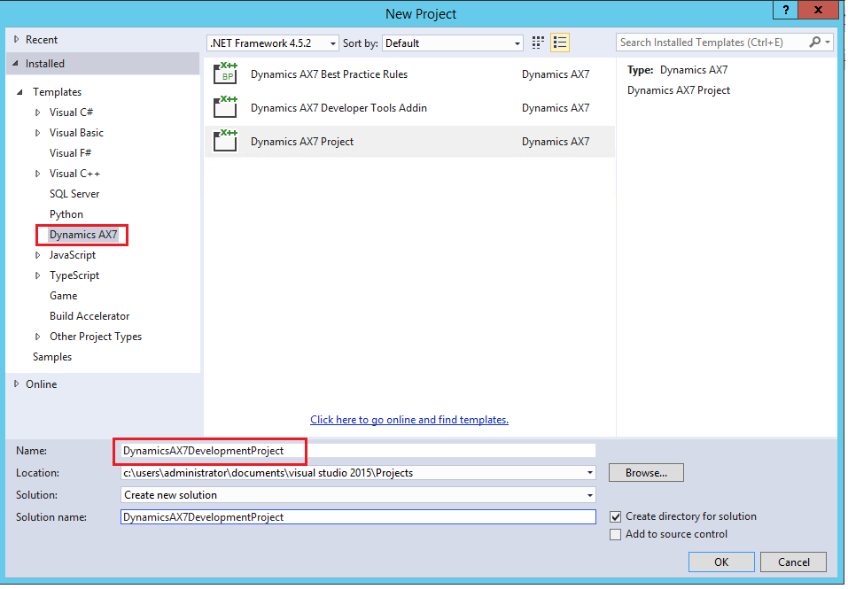 In the ‘Save’ screen that appears, select the project DynamicsAX7 and give it a name of your choice and press ‘OK’