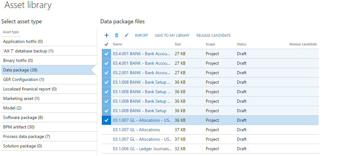 To import these data packages to the project, in your LCS project go to Asset library, select Process data package, and then click Import.