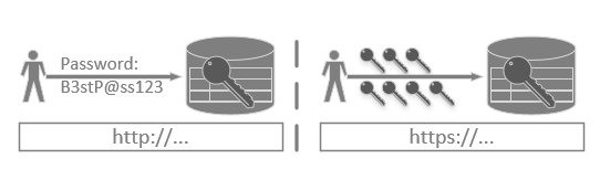 Figure 1 – Data transmission before (http://…) and after SSL encryption (https://…).