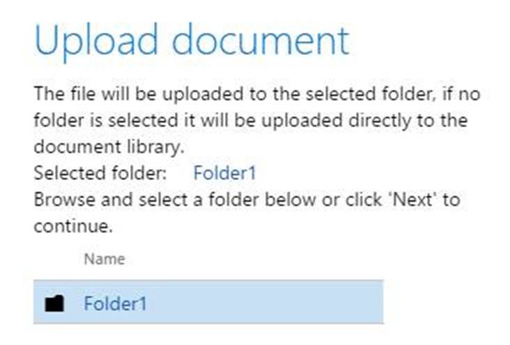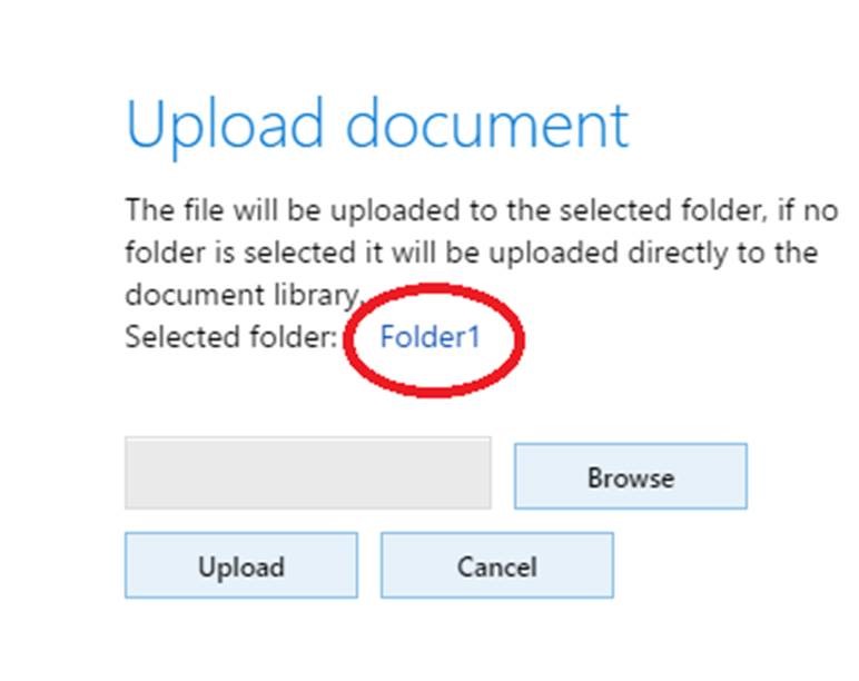 - To upload a document to a subfolder, navigate to the subfolder by clicking the name of the parent folder.