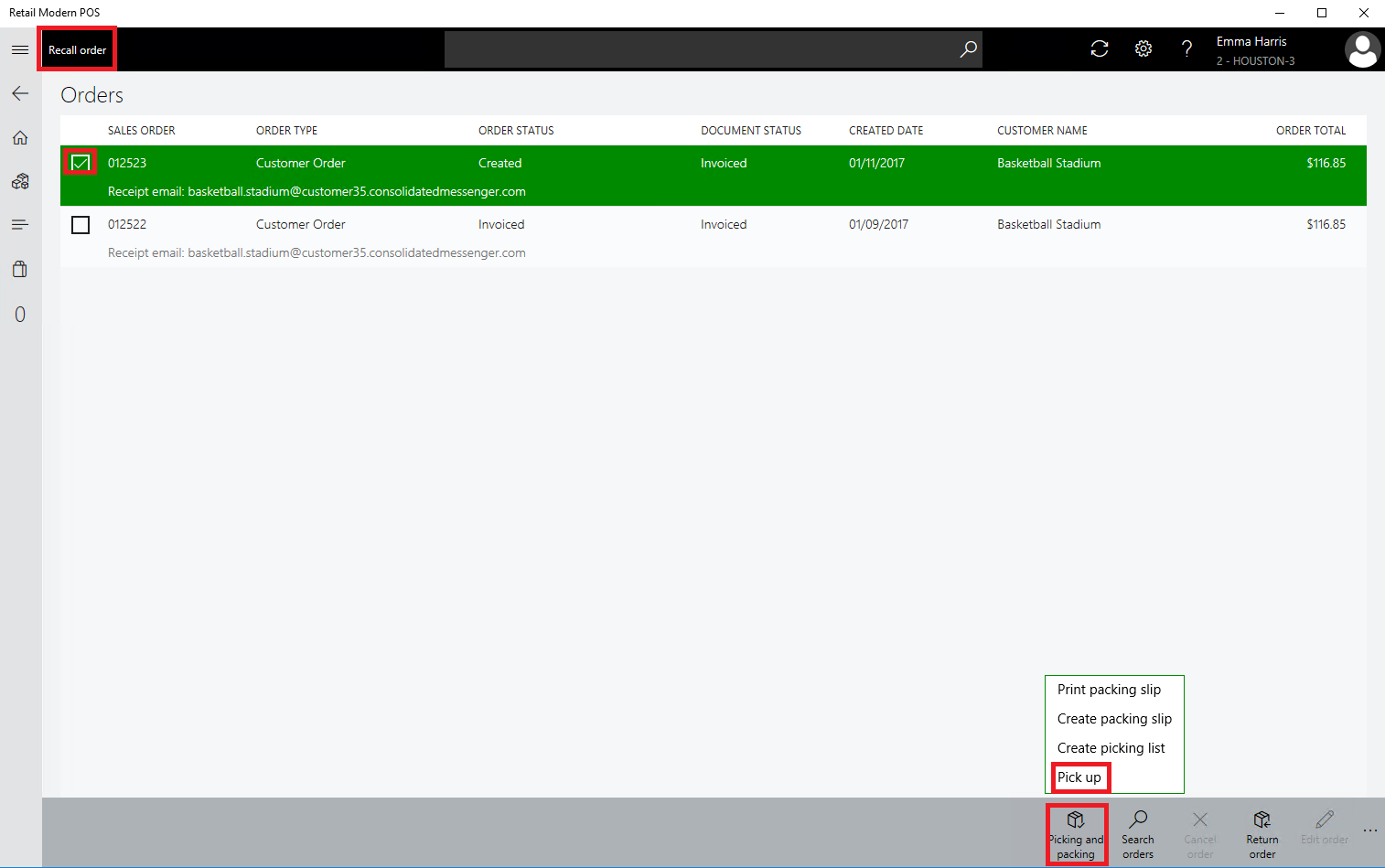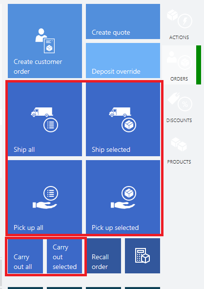 Note: that there is a operation button for “Carry out all”, “Carry out selected”, “Pick up all”, “Pick up selected”, “Ship all” and “Ship selected”.