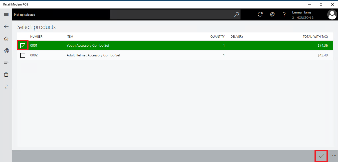 17.) In the Pick up products form, you should see the correct item to pick up and the Sales order number. Click Pick up