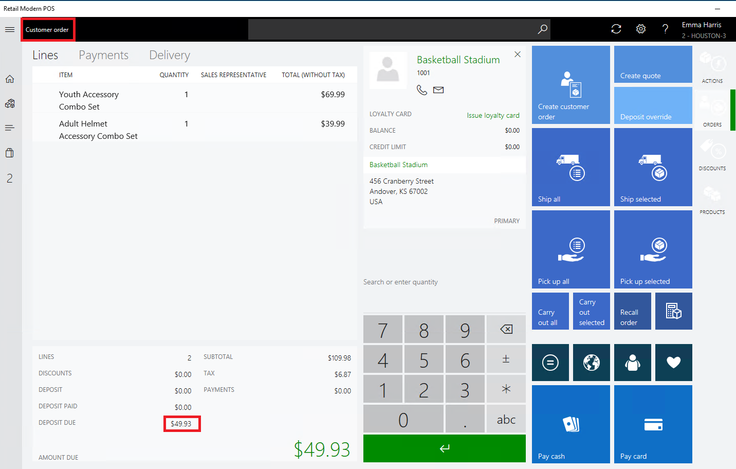 Dynamics 365 for Operations MPOS now allows cashiers to add both Carry out and Customer Order items on the same transaction. In previous versions of MPOS and EPOS, these required separate transactions for a cash and carry and one for a shipment\pick-up.