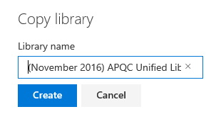 - Select a library name, then select Create.