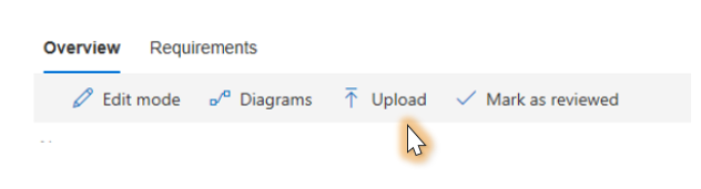 - To view or upload a Visio file, navigate to the business process, and then select Diagrams in the Overview pane. This will open the flowchart page.