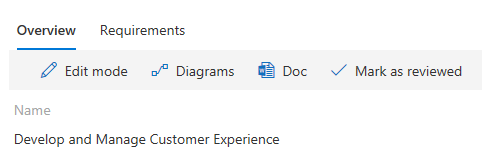 During the requirements gathering phase of a project, use the BPM library to review business processes and tasks, and to identify requirements. In BPM, you can mark business processes as Reviewed to track the review process.